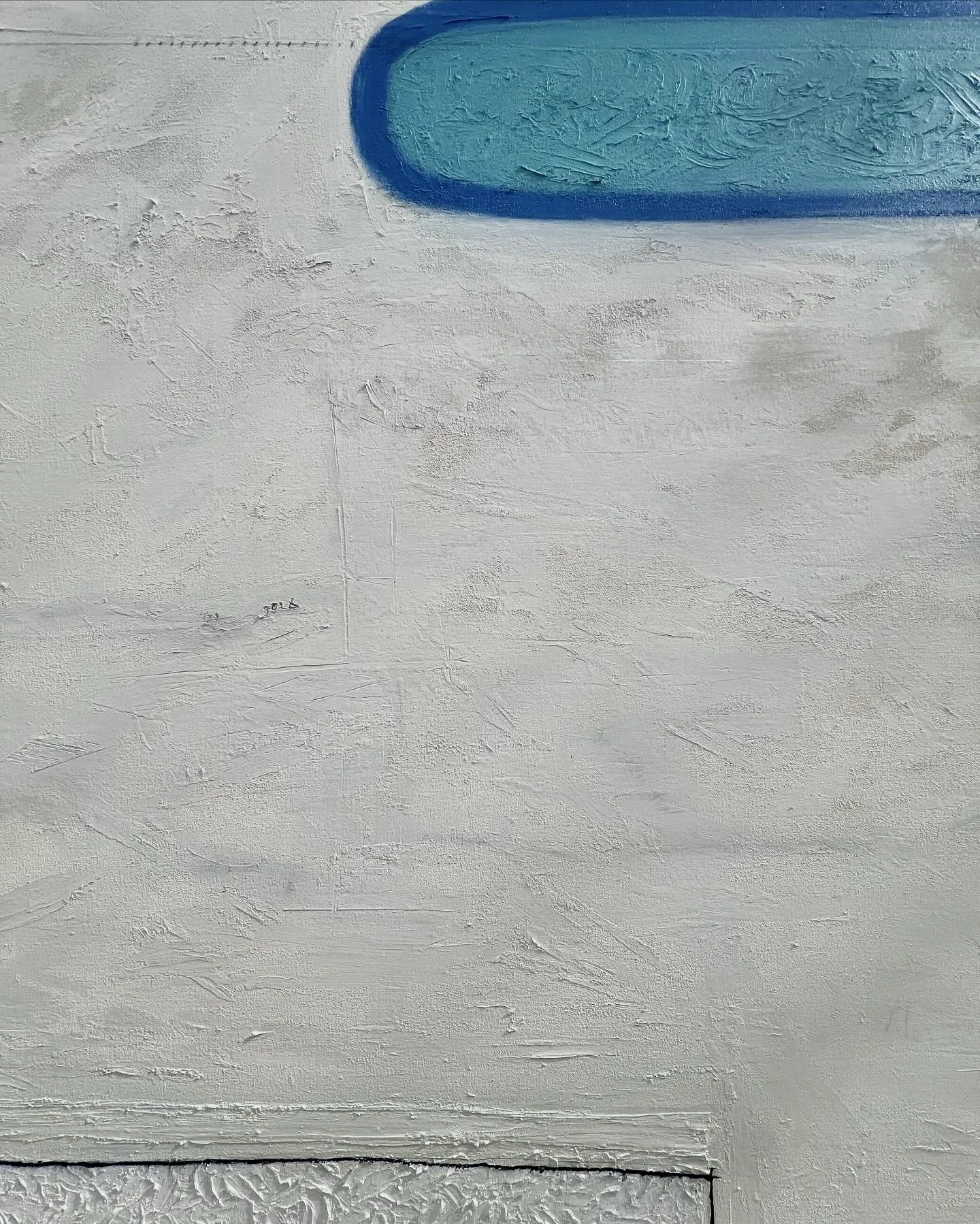 House paint, cement, charcoal, and spray on canvas.