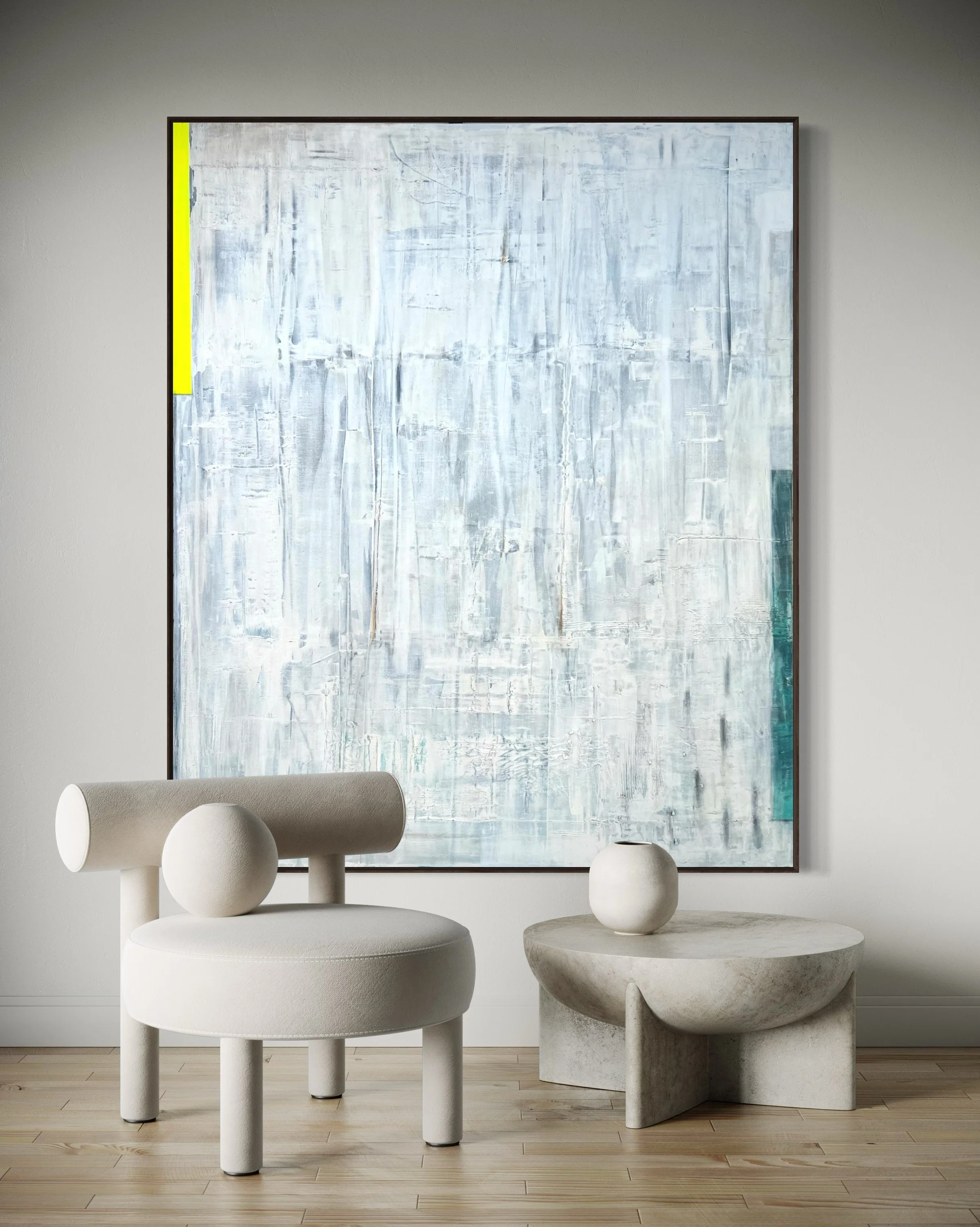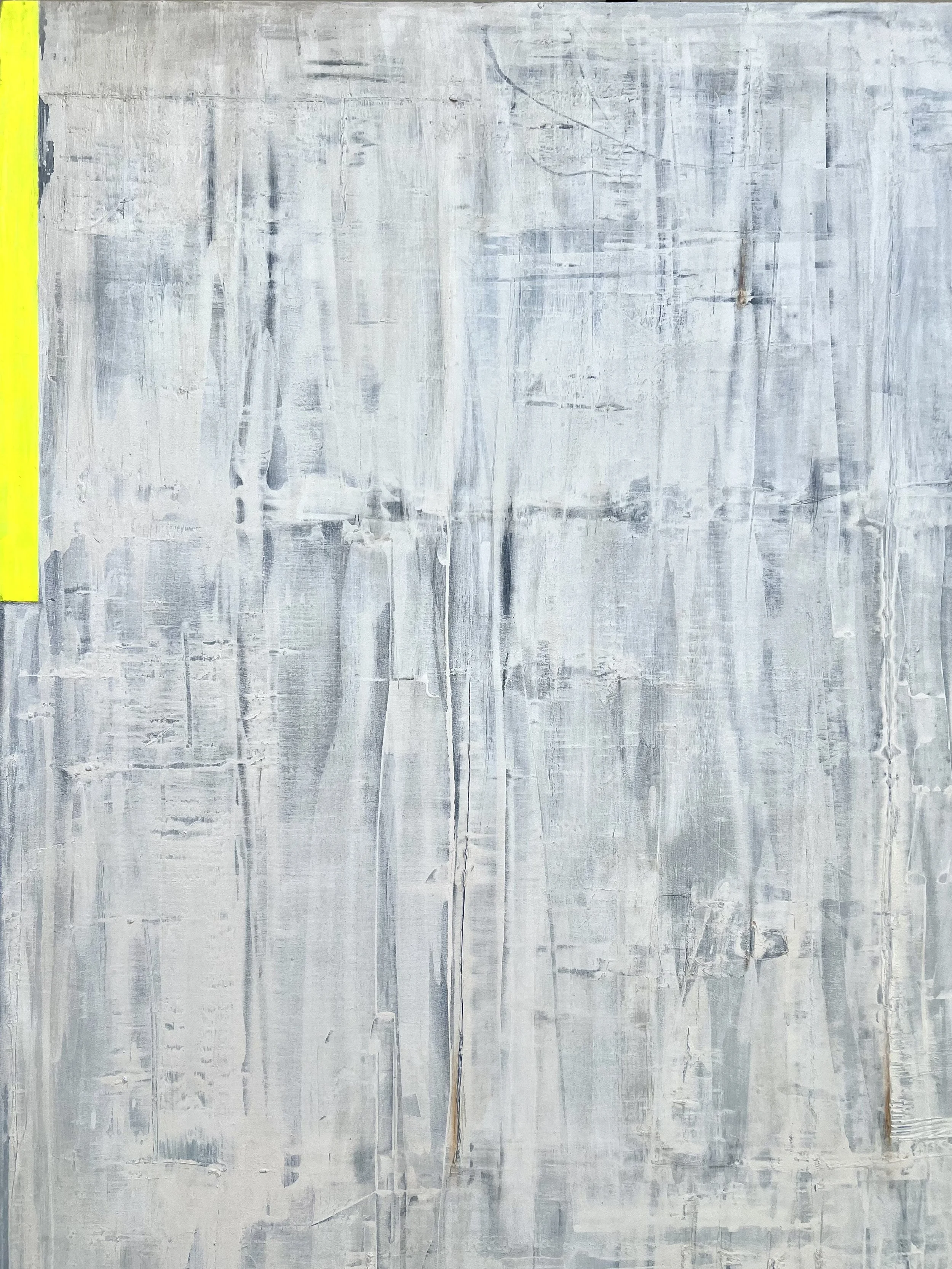 House paint, cement, charcoal, coffee, and spray on canvas.